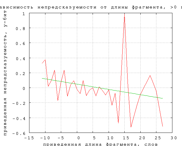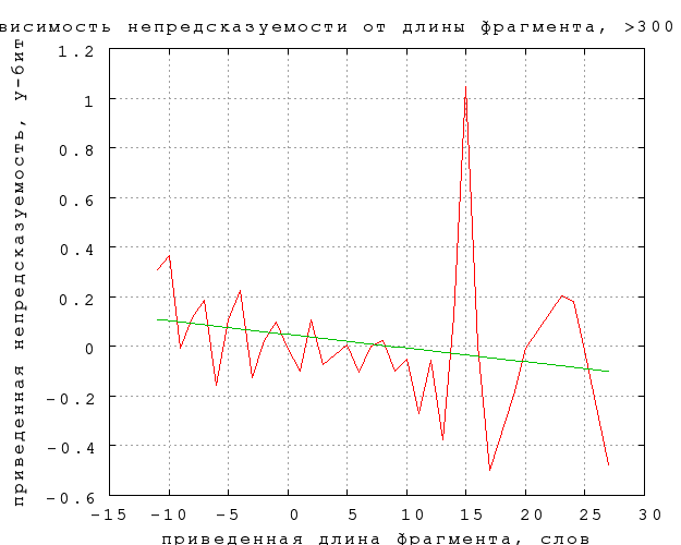 - среднее значение вычиталось из непредсказуемости и связанности, а средняя длина из длины фрагмента для каждой категории отдельно